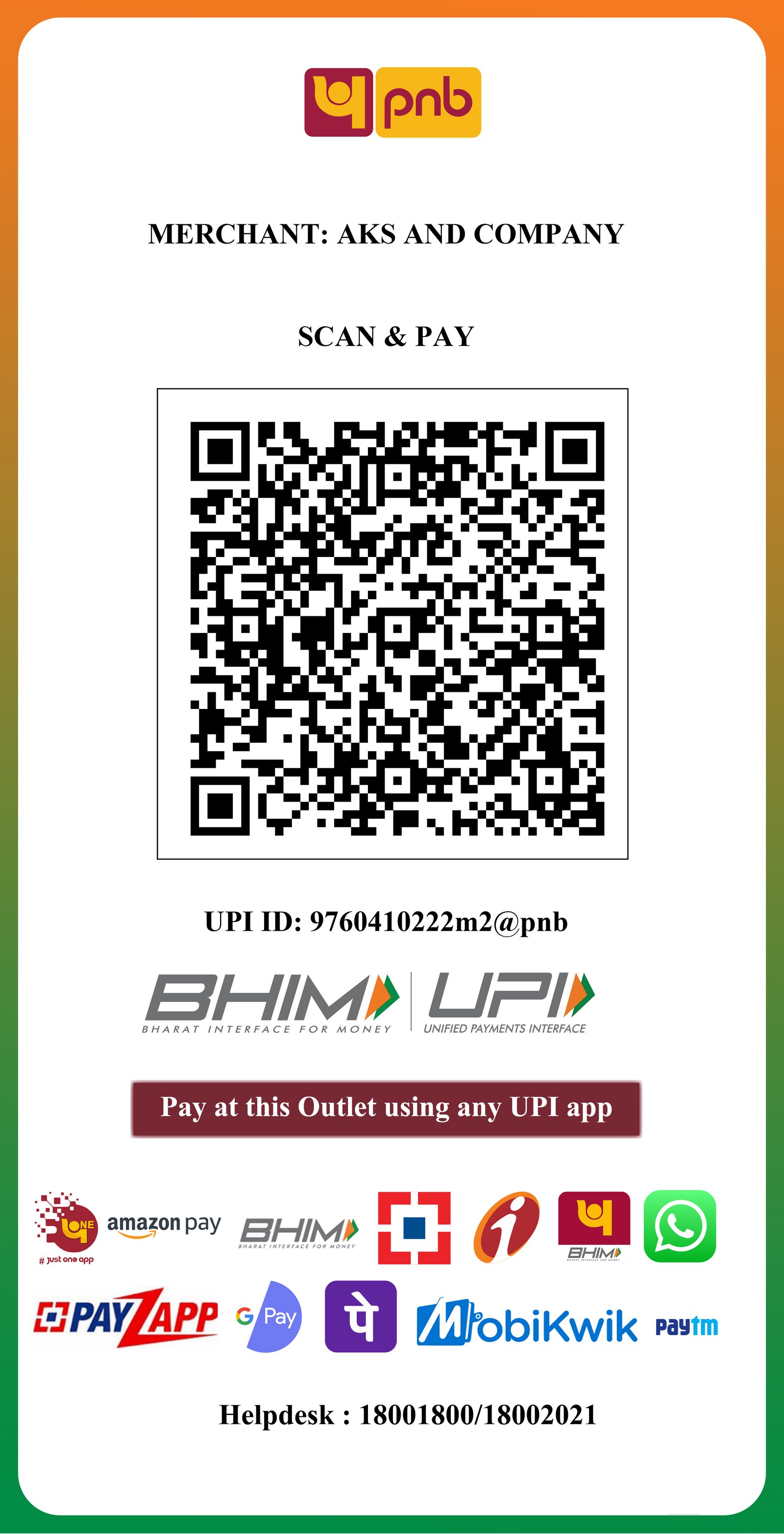 Account Name : AKS Company Bank Name : Punjab National Bank Account Number : 3644002100021209 Bank IFSC Code : PUNB0364400 Bank Branch : Mathura